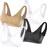ست ۴ عددی سوتین فوق العاده SLIMMAXX بدون بستهای مزاحم و آزاردهنده جنس فوقالعاده نرم و انعطافپذیر بندهای شانه بسیار پهن روکش بدون درز قابل شستشو در دمای ۳۰ درجه سانتیگراد (هر بسته دارای 4 عدد سوتین دوتا سفید یک عدد بژ و یک عدد مشکی می باشد )